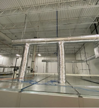 Roughing in and relocating existing prefabricated clean rooms in two of their facilities; and,